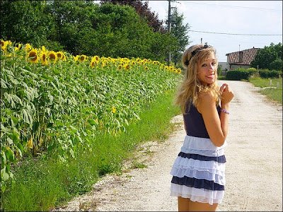 J'adore tout: La robe, le headband et le champ de tournesol 🙂