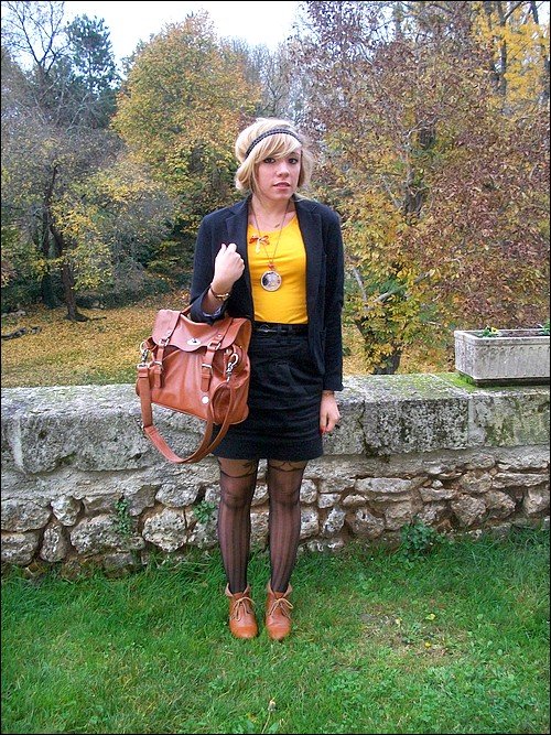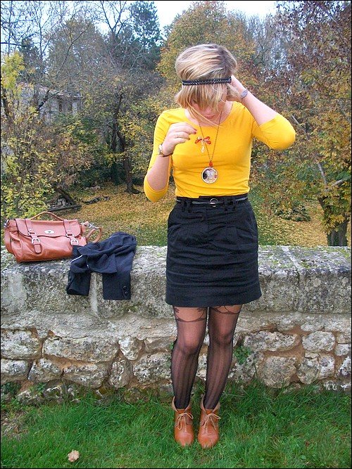 Sinon, j'adore ta tenue ! Tes collants sont super originaux. Et ce haut jaune te va magnifiquement bien.