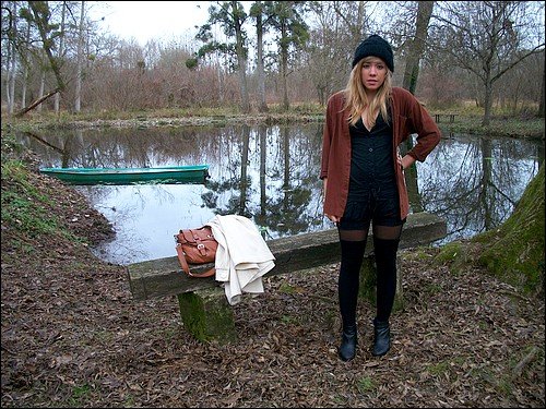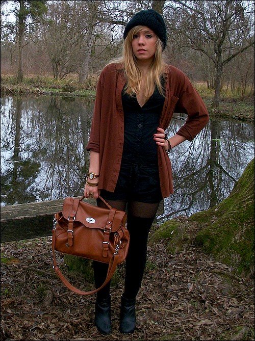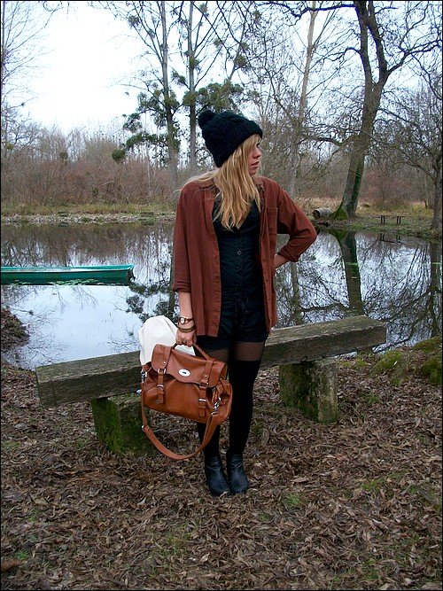 Boots et Manteau H&M, Bonnet H&M homme, Combibi Jennyfer, Veste Vintage, Sac AL