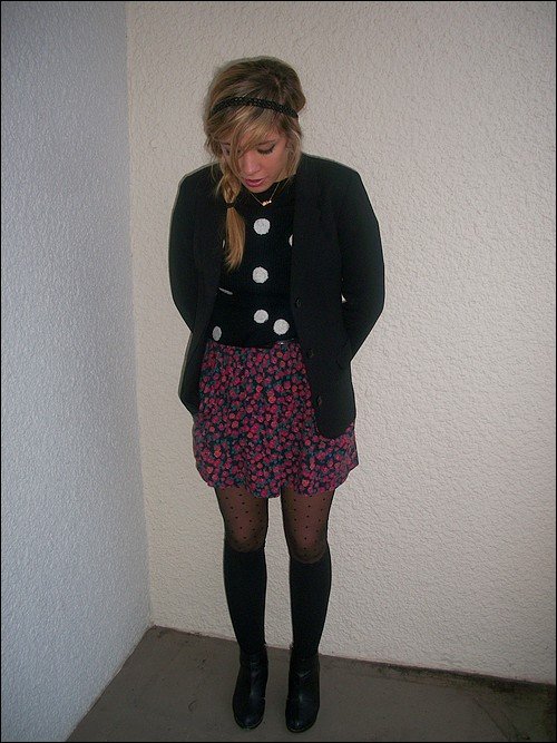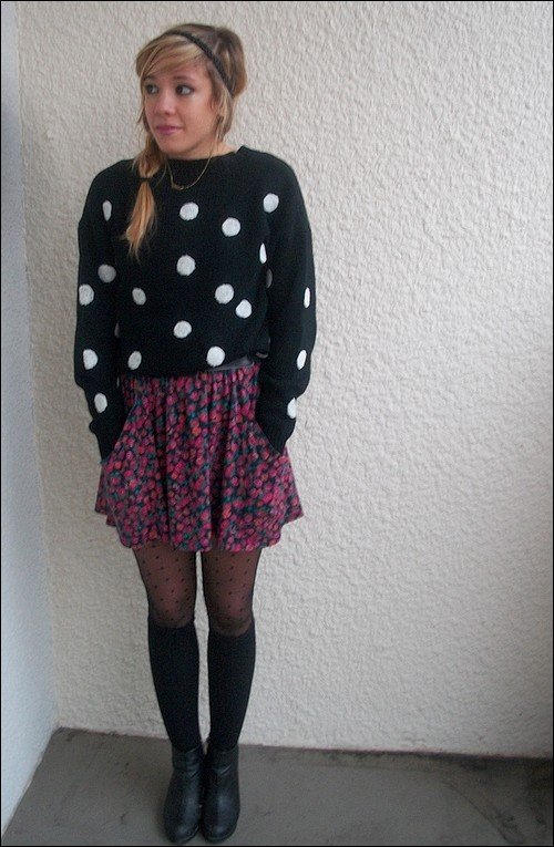 Sympa cette tenue, j'aime beaucoup les chaussettes hautes et la jupe à fleurs, ça fait printanier^^