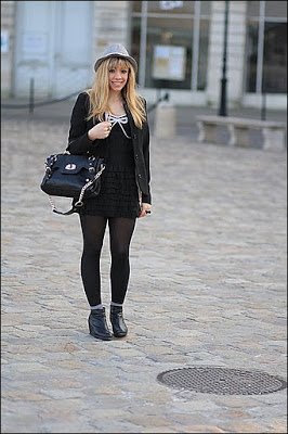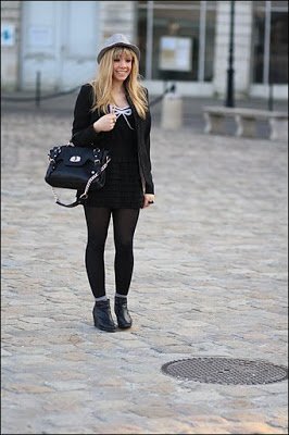 Super tenue, toute noire sans faire triste, c'est très féminin j'aime beaucoup =)
