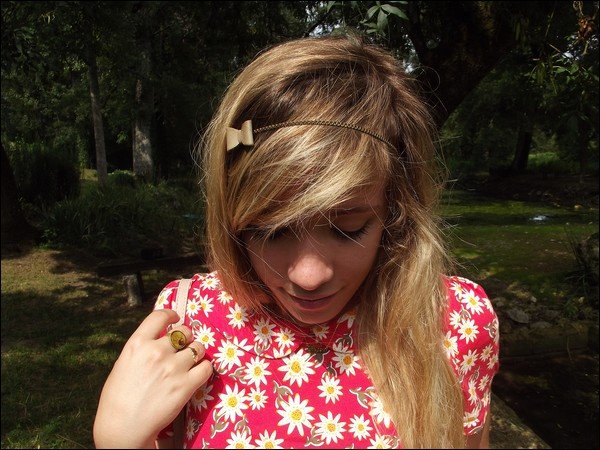 Sinon mon petit headband à noeud provient du site Mia Reva, e-shop d’accessoires qui propose de bien jolies choses : foulards, ceintures, bijoux, headbands, sacs, pochettes… J’ai personnellement craqué sur ce modèle, qui se fond dans ma chevelure de blé. J’adore son côté très discret mais néanmoins présent et tout mignon. Et puis avec une robe aussi imprimée/colorée, rien ne sert d’en faire trop : accessoires beiges de rigueur !