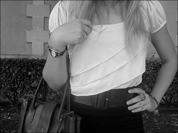 Et une petite série en noir et blanc pour changer. Rien de compliqué quand il fait une chaleur pareil… Je ne vous avez jamais montré cette tunique Naf Naf que j’ai depuis plusieurs mois, shoppée 7€ en soldes. Bon je sais, il faut absolument que j’aille chez le coiffeur sinon mes racines vont se transformer en ombre hair malgré moi ! Mais avant ça faudrait que j’ai un peu de thune… Je vous demanderai donc de tolérer cette vilaine démarcation encore quelques temps 😉