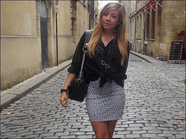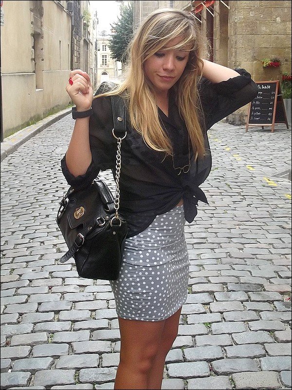 J'adooooore ! Cette tenue est superbe :). Le sac, les chaussures, la petite jupe à pois, tout est parfait 🙂