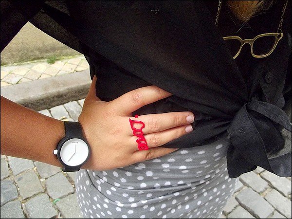 Superbe ta jupe! J'aime aussi beaucoup la bague Love!