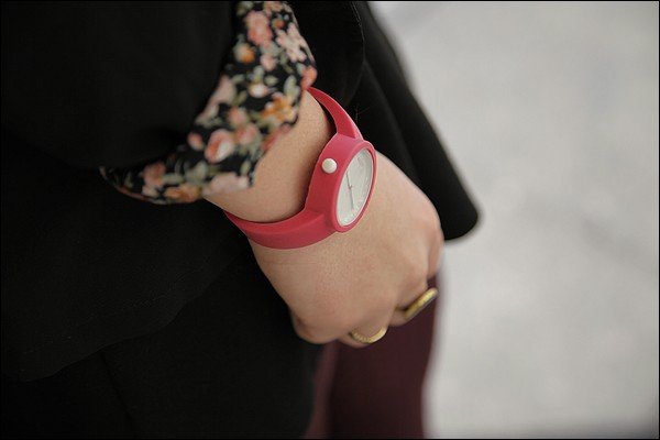 Le collant, le sac et la montre ( que j'adore! ) donnent une belle touche de couleur.