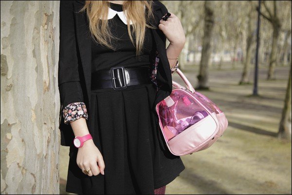 ta tenue est pleines de petits détails et c'est ce qui la rend jolie et unique 😉 le sac rose bonbon transparent est topissime!! et les photos magnifiques chapeau à la photographe 😉