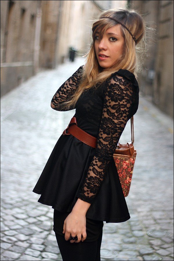 je suis fan de la robe avec ses manches en dentelle ! j'aime beaucoup ton headband ! des bises